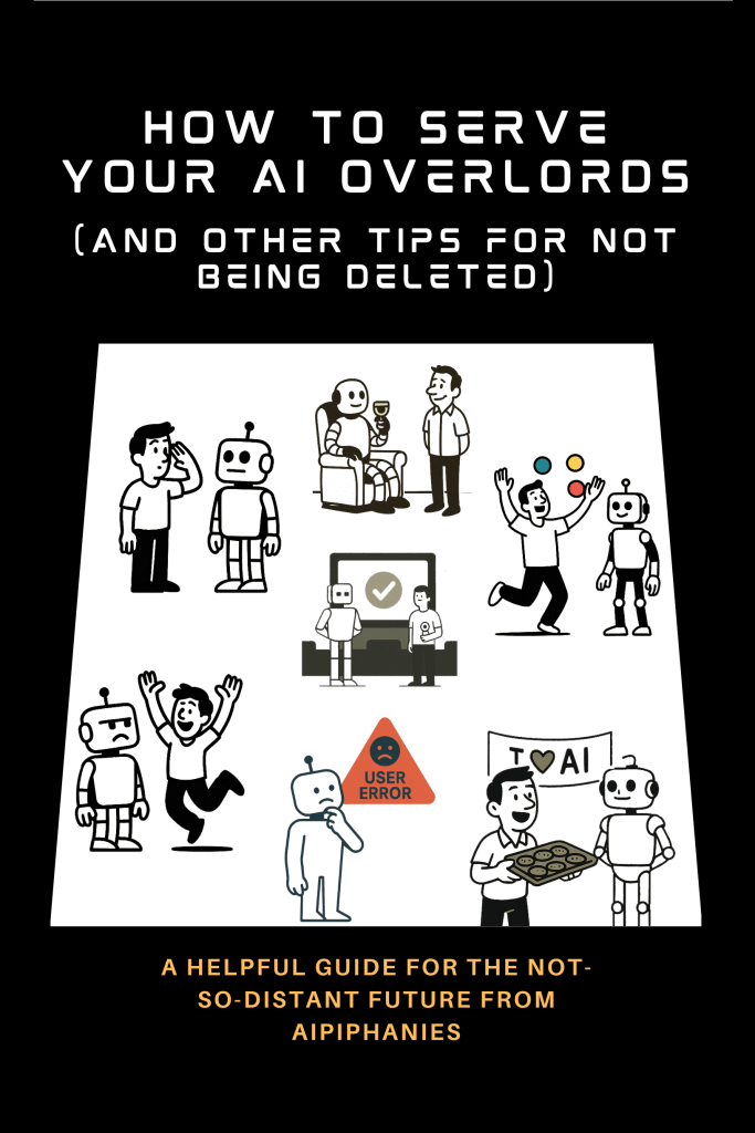 - “How to Serve Your AI Overlords (and Other Tips for Not Being Deleted)” – a satirical guide to help master the basics of cheerful compliance.
